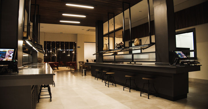 Toda a parte de iluminação foi pensada para que, nos diferentes períodos de atendimento, sofresse uma grande mutação para que o ambiente de atendimento self-service do dia se diferenciasse do ambiente noturno de steakhouse, trazendo um novo ar ao anoitecer.